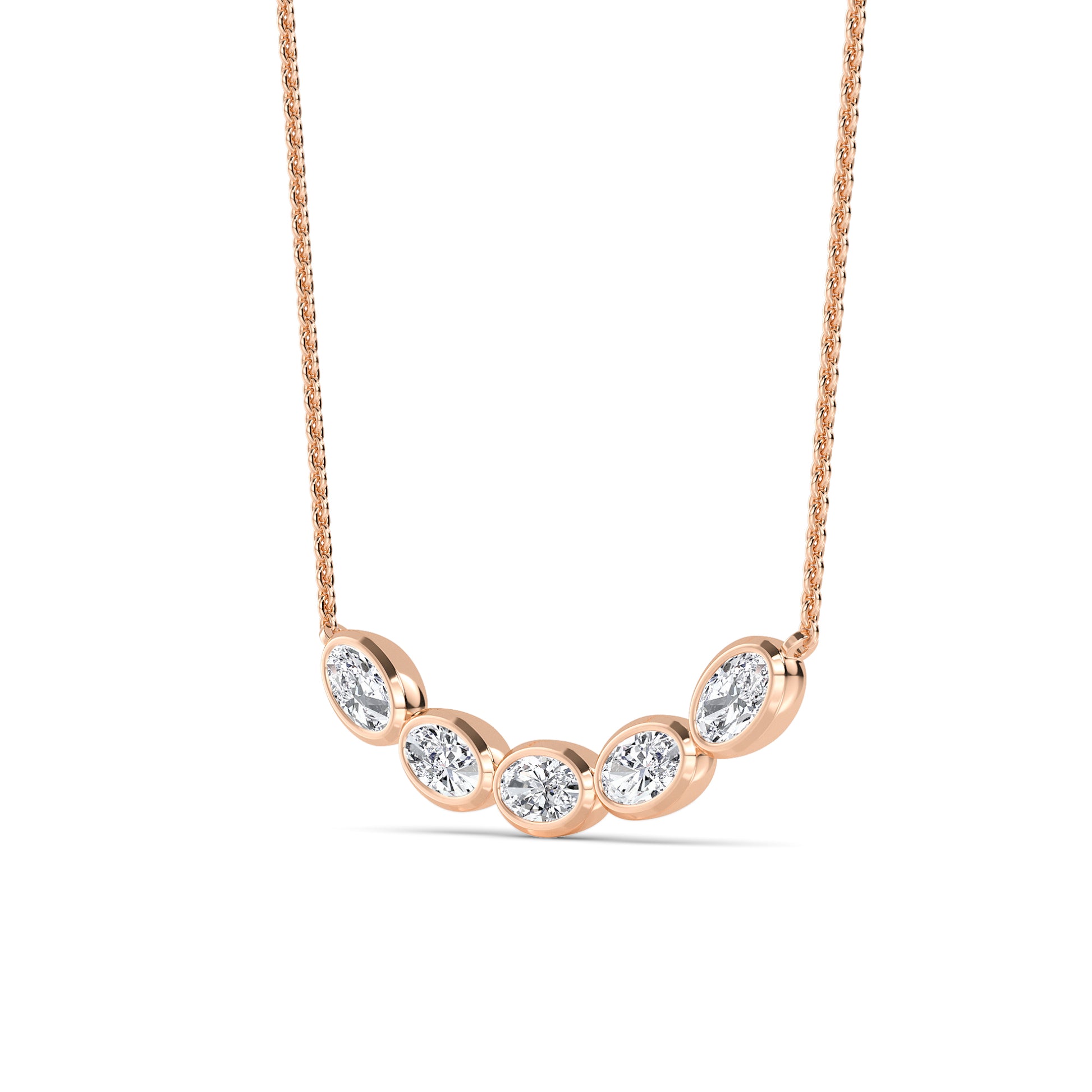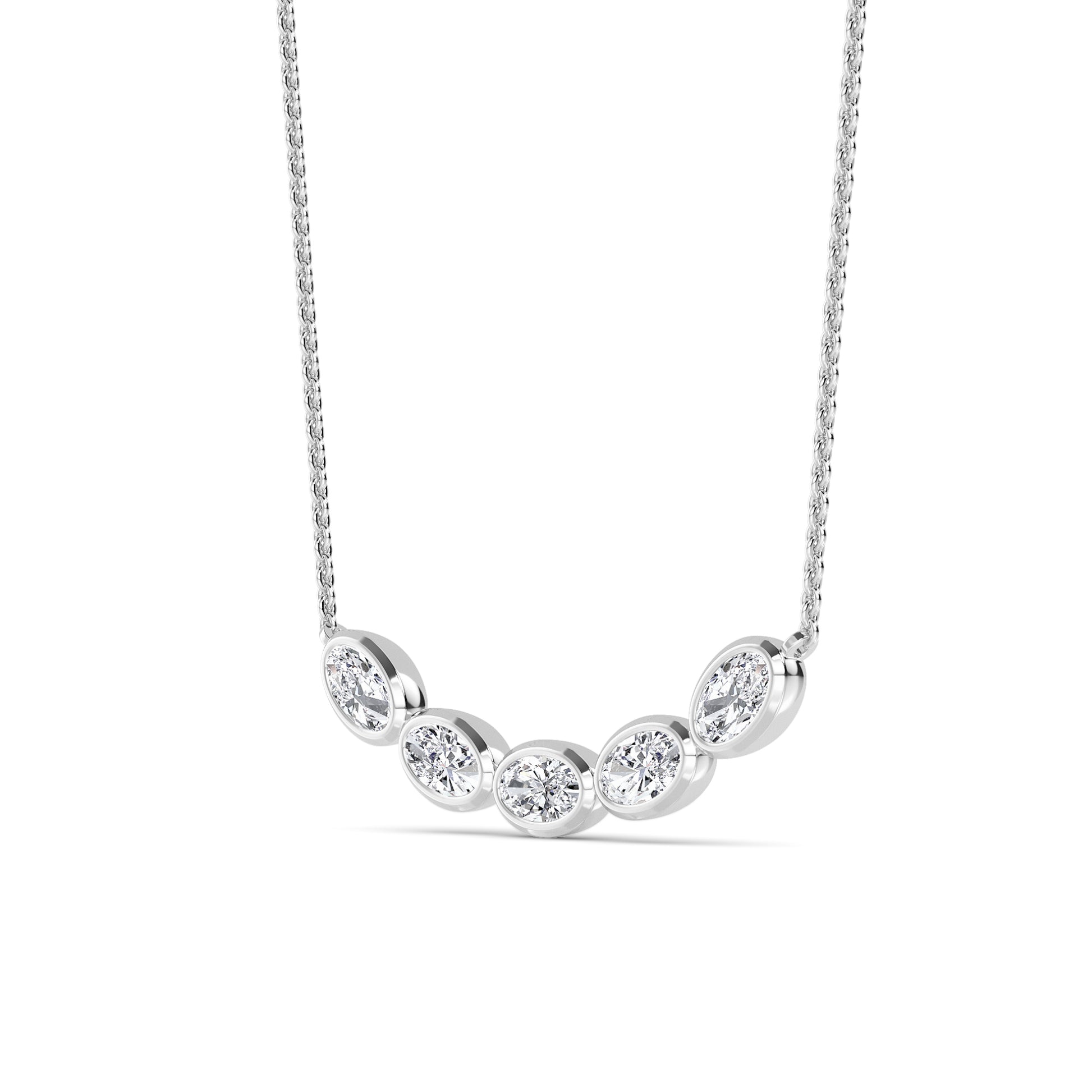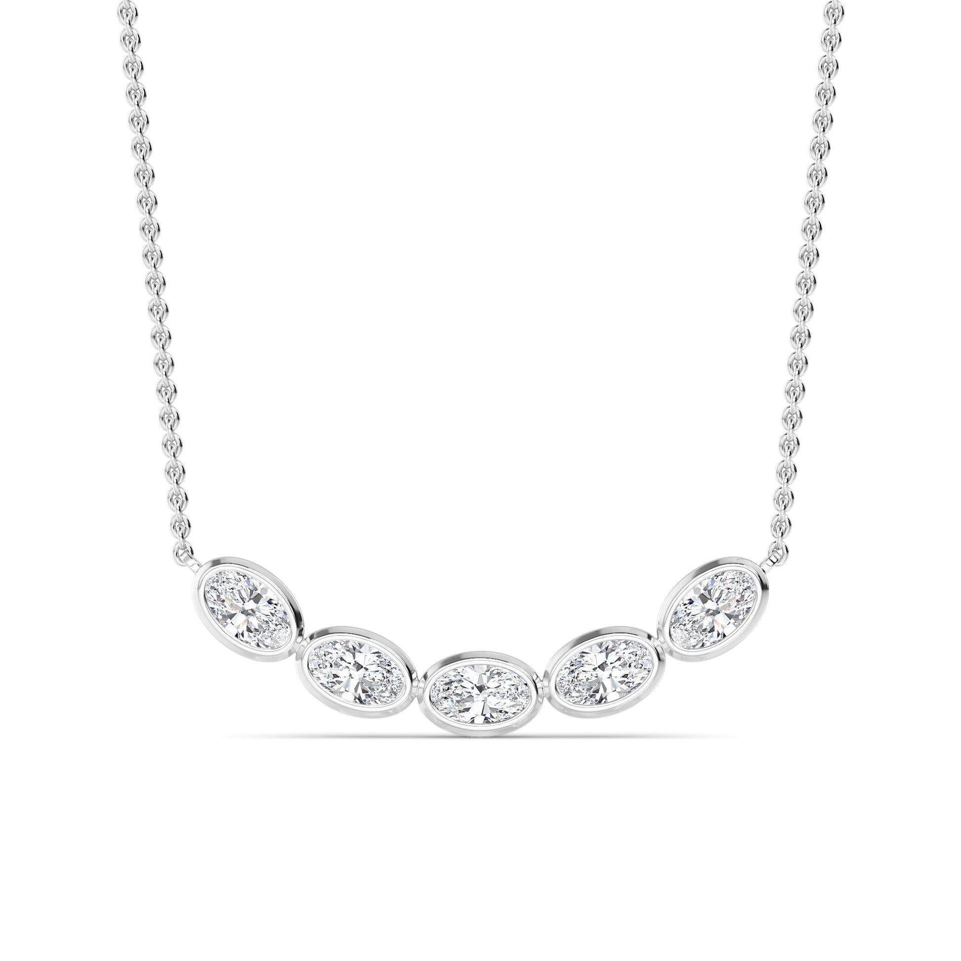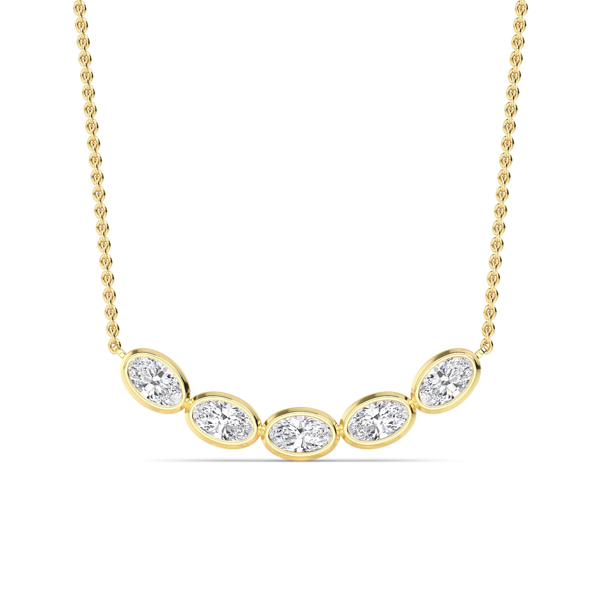 The L'Harmonìe necklace captivates with its balanced beauty. Five sparkling oval-cut diamonds adorn the delicate chain in white gold/yellow gold/rose gold, adding elegance and brilliance to any outfit.