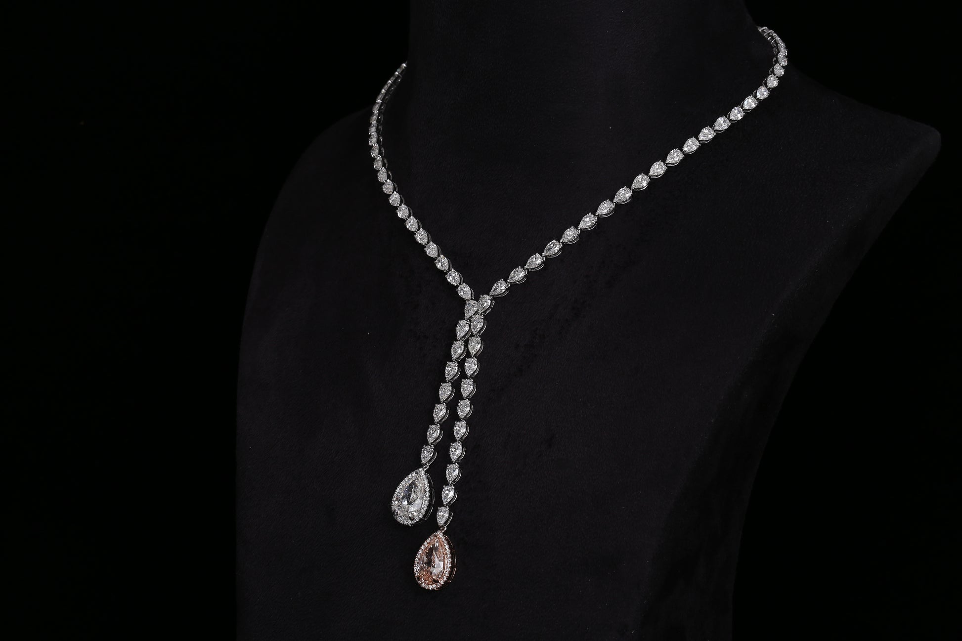 A necklace full of meaning: Two drops, one classically sparkling, the other in a delicate champagne tone, symbolize a promise – unique, enduring and full of elegance.