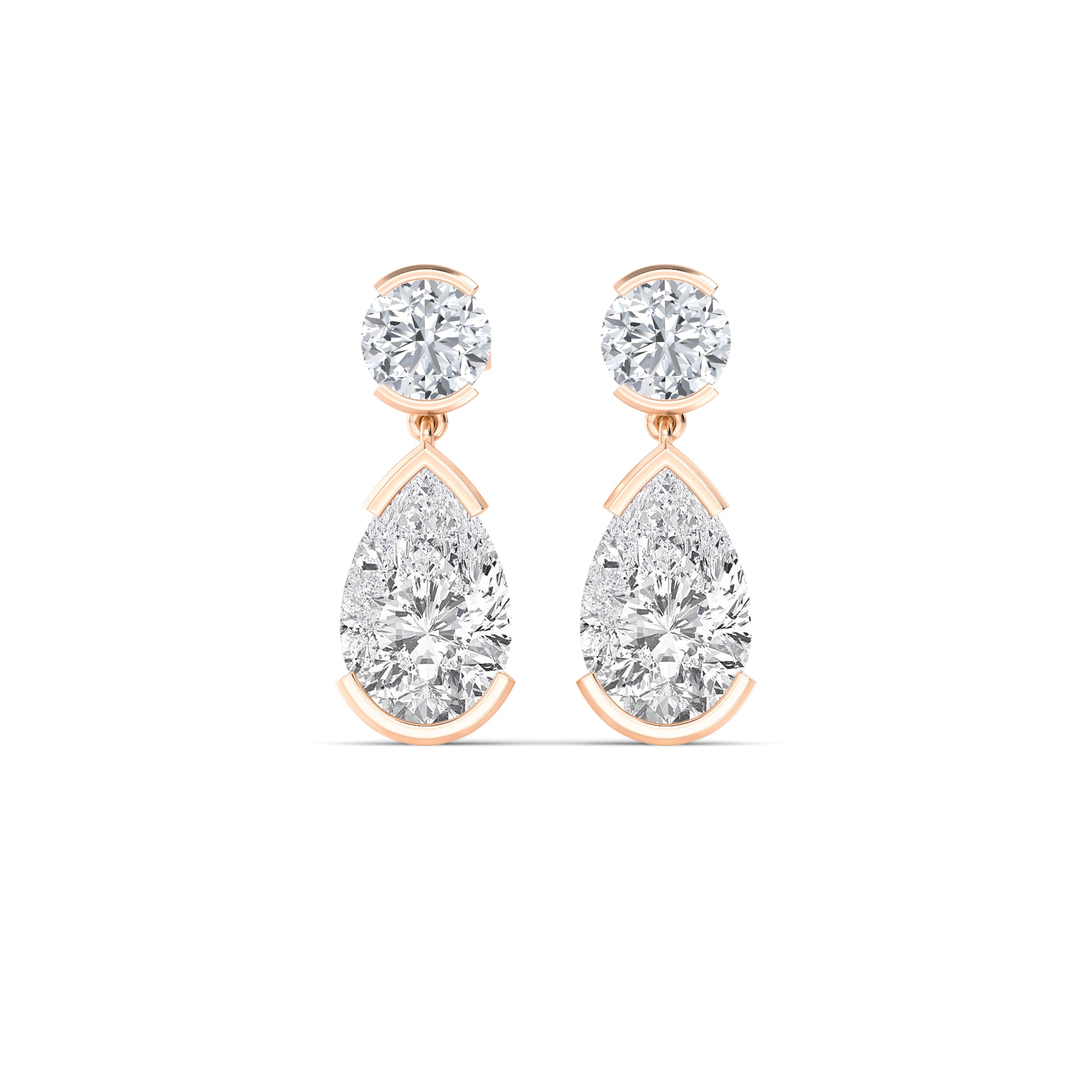 The La Pureté earrings embody understated elegance. Pear-shaped diamonds, with a brilliant-cut post set in the finest gold, lend them a minimalist beauty.