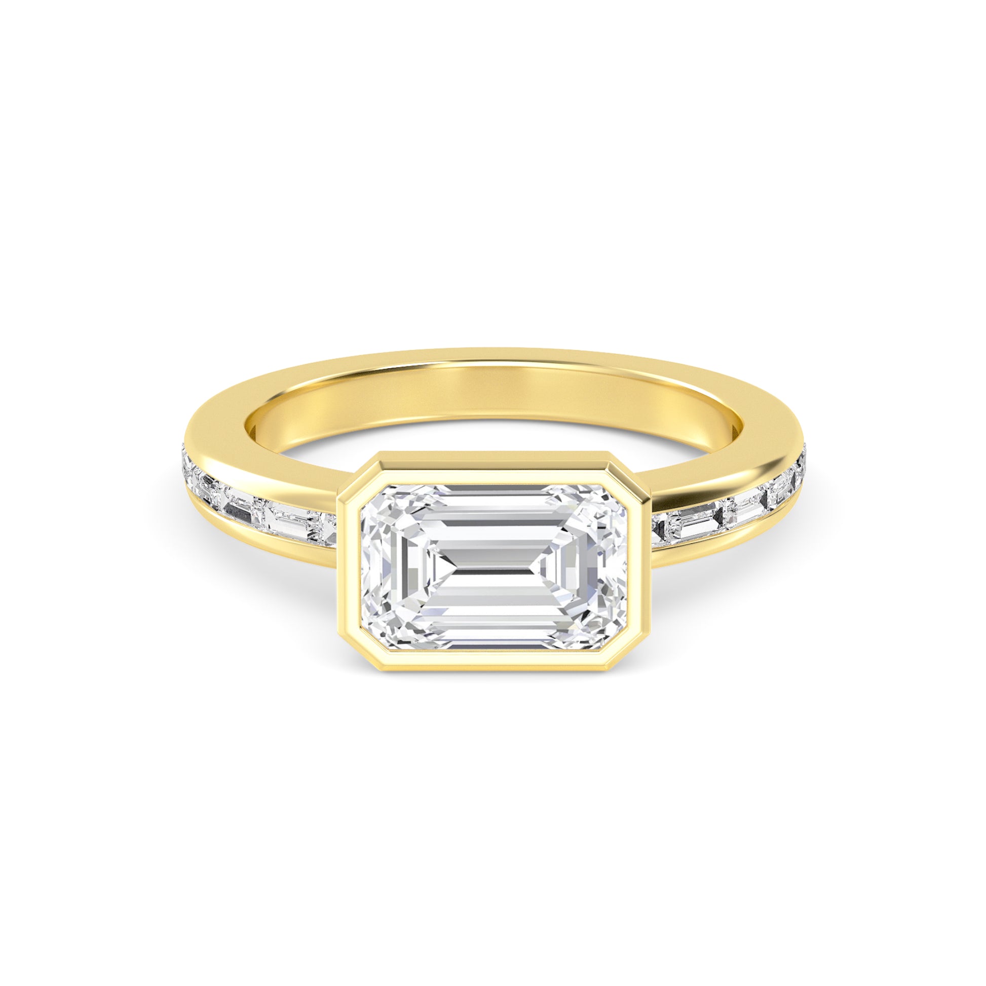 The Virtue ring impresses with its clear symmetry: a fine emerald-cut diamond, complemented by stones set laterally in the band. A ring that stands for values, strength, and character.