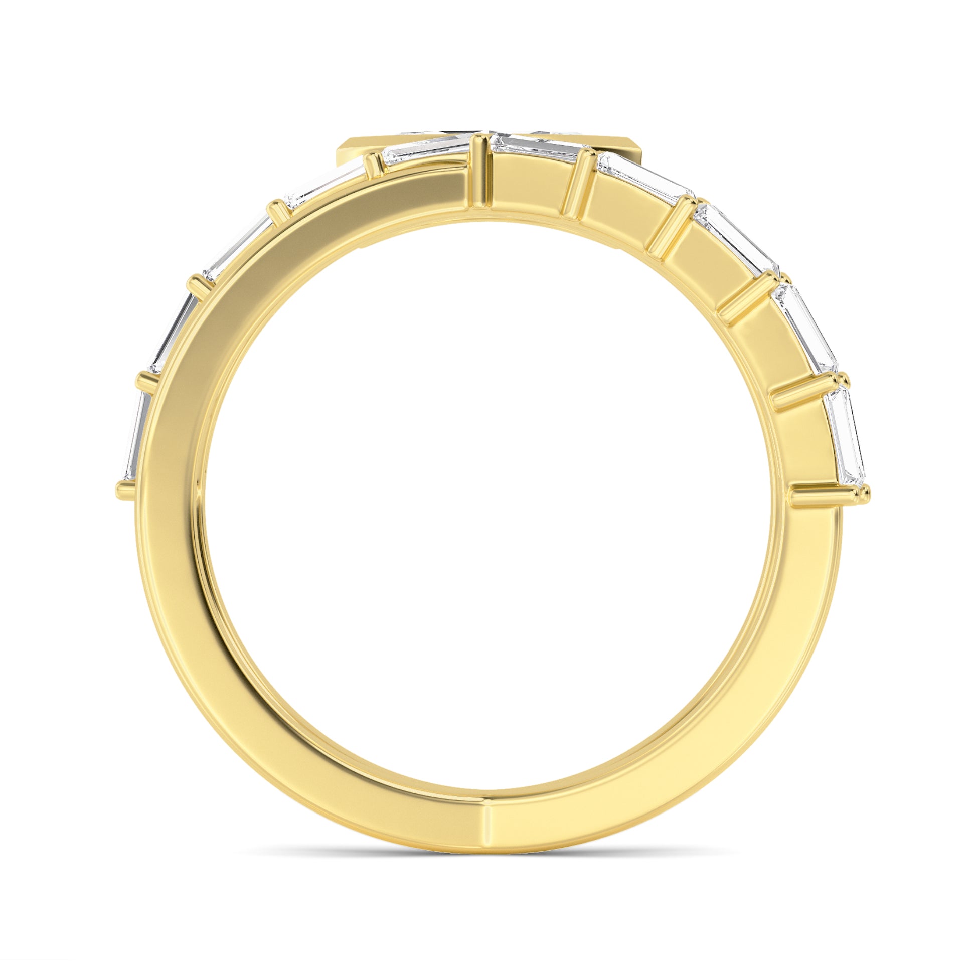 The Union Ring features an extraordinary composition: elongated baguette-cut diamonds and a central marquise-cut diamond merge into a unique design that symbolizes the union of two souls.
