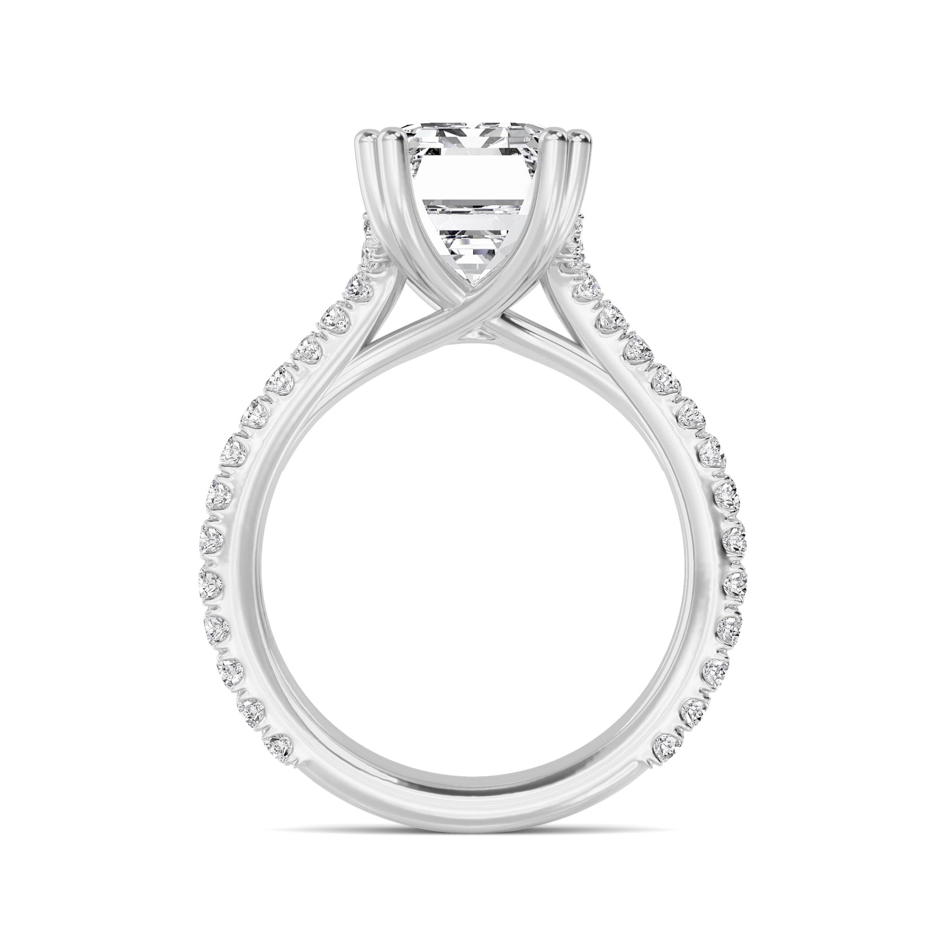 Der Empress Ring strahlt majestätische Stärke aus. Ein zentraler Diamant im Smaragdschliff, umrahmt von funkelnden Seitensteinen, macht ihn zu einem Ring für Königinnen des Alltags.
